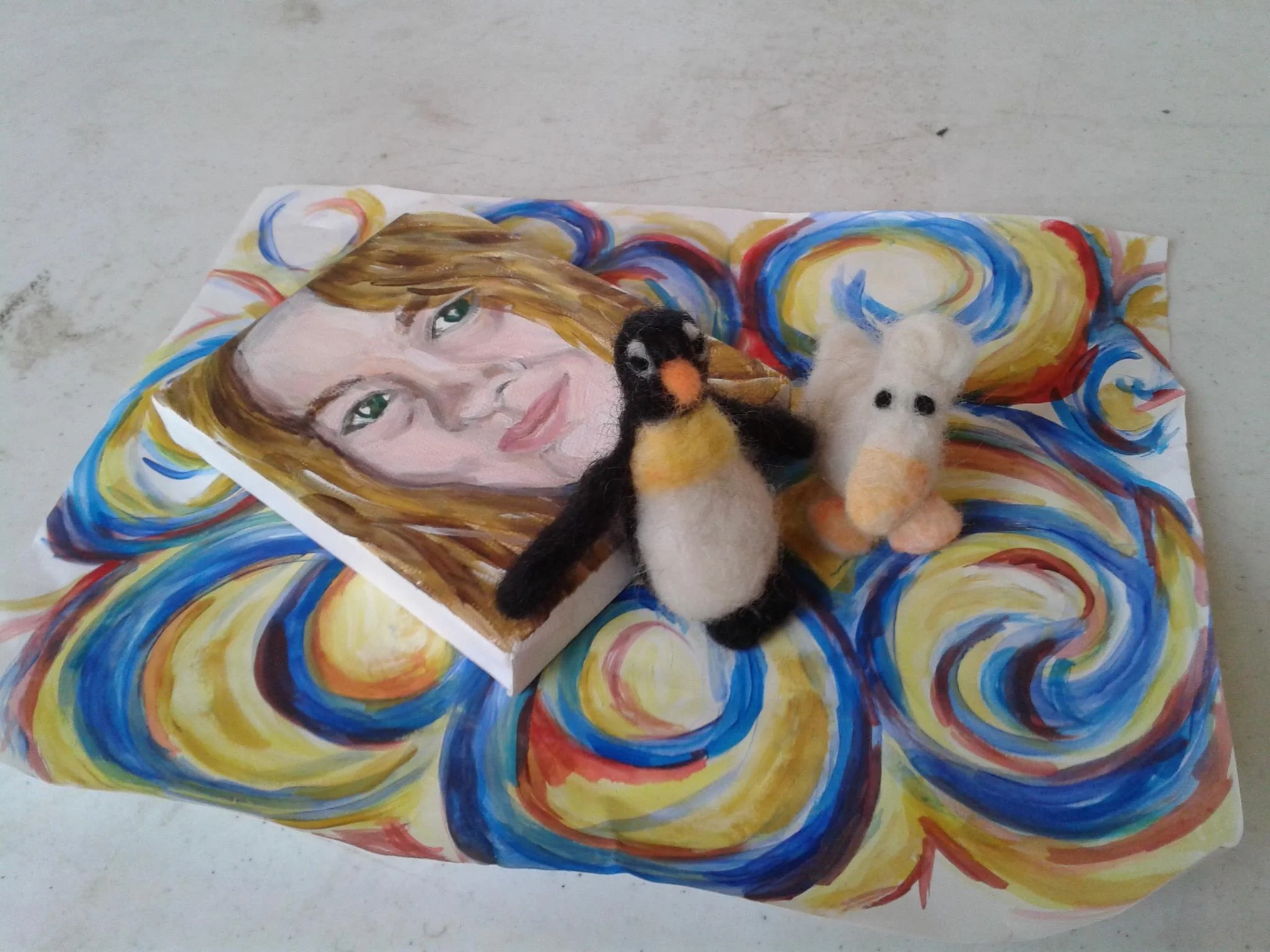 Figure 3: Art camp haul. I made the small self-portrait to serve as a reminder to myself that I exist.