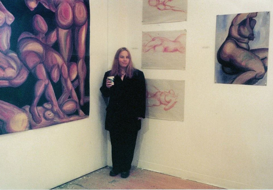 By 20, things had changed, I had changed. Making art was no longer about what was left once I had finished, it was also about the process. I was taking a class in mixed media and when we moved into the curriculum around oils I was resistant. My professor gave me oil sticks, they were like giant Craypas, and said to have fun. "Have fun!", I scoffed. I was fully prepared to hate every minute of it but for some reason I decided to go big or go home. I stapled a 5 foot by 7 foot canvas up on the wall, prepped it, and late one night, alone in the studio, I put on my Walkman, listened to Aretha Franklin’s “I Never Loved a Man (The Way That I Love You)” on repeat and wildly sketched my first real oil painting. At first the sketch was a chaotic mess of swirls but then I saw them: the women trapped in the painting, and I began to feverishly paint to free them from obscurity. I used paint thinner to bleed the color out of the oil stick sketch which created an ink like feel.